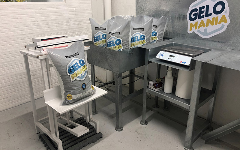Franquia de fábrica de gelo completa com capacidade produtiva de 5 ton/dia e todo o sistema de sala de produção, embalagem e estoque.